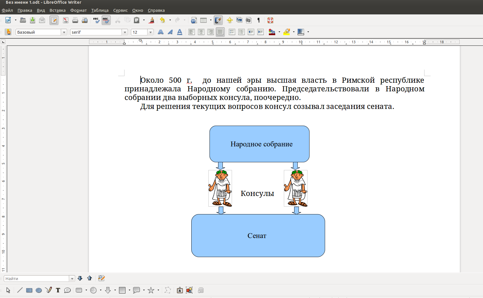 LibreOffice Writer содержит несколько библиотек с изображениями, которые удобно использовать во многих случаях, в том числе и при создании структурных схем. Иногда такие элементы называют значками или стенсилами.