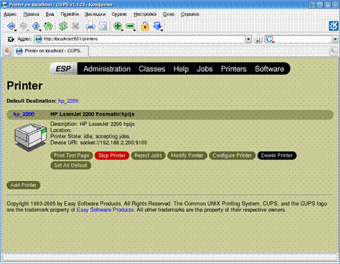 Применение службы печати CUPS. 94