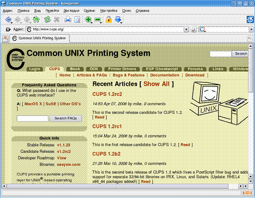 Общие сведения о возможностях в системы печати CUPS 1.1. 92