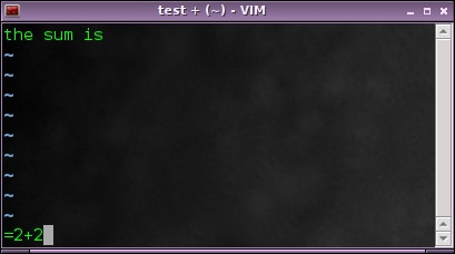 Когда вы находитесь в режиме вставки, вы можете нажать Ctrl+r, а затем ввести '=' и выполнить простое вычисление. Нажмите клавишу ENTER и результат будет вставлен в документ. Например, попробуйте: