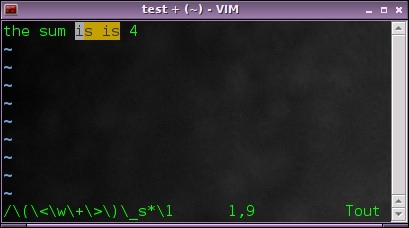 Когда вы что-то набираете быстро, то случается, что вы пишете слово два раза подряд. Например, "this this". Такая ошибка может быть у любого, даже если текст вычитывается. Будем надеяться, что есть простое регулярное выражение, которое избавит вас от этого. Используйте поиск ('/' по умолчанию) и наберите:
